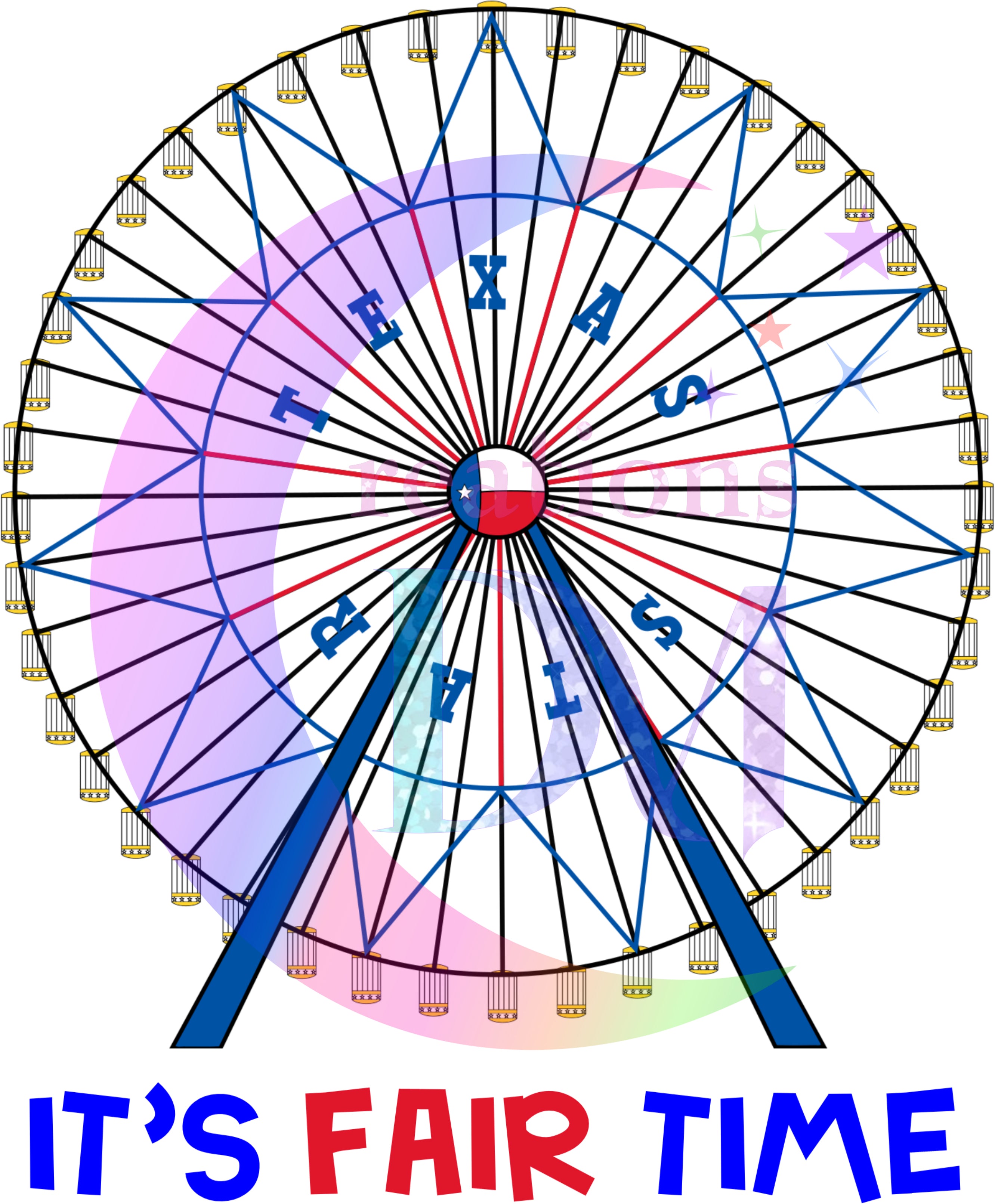State fair of texas- fair time blue letters with ferris wheel