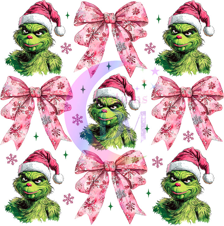 Christmas DTF - grinch - pink ribbon and grinch