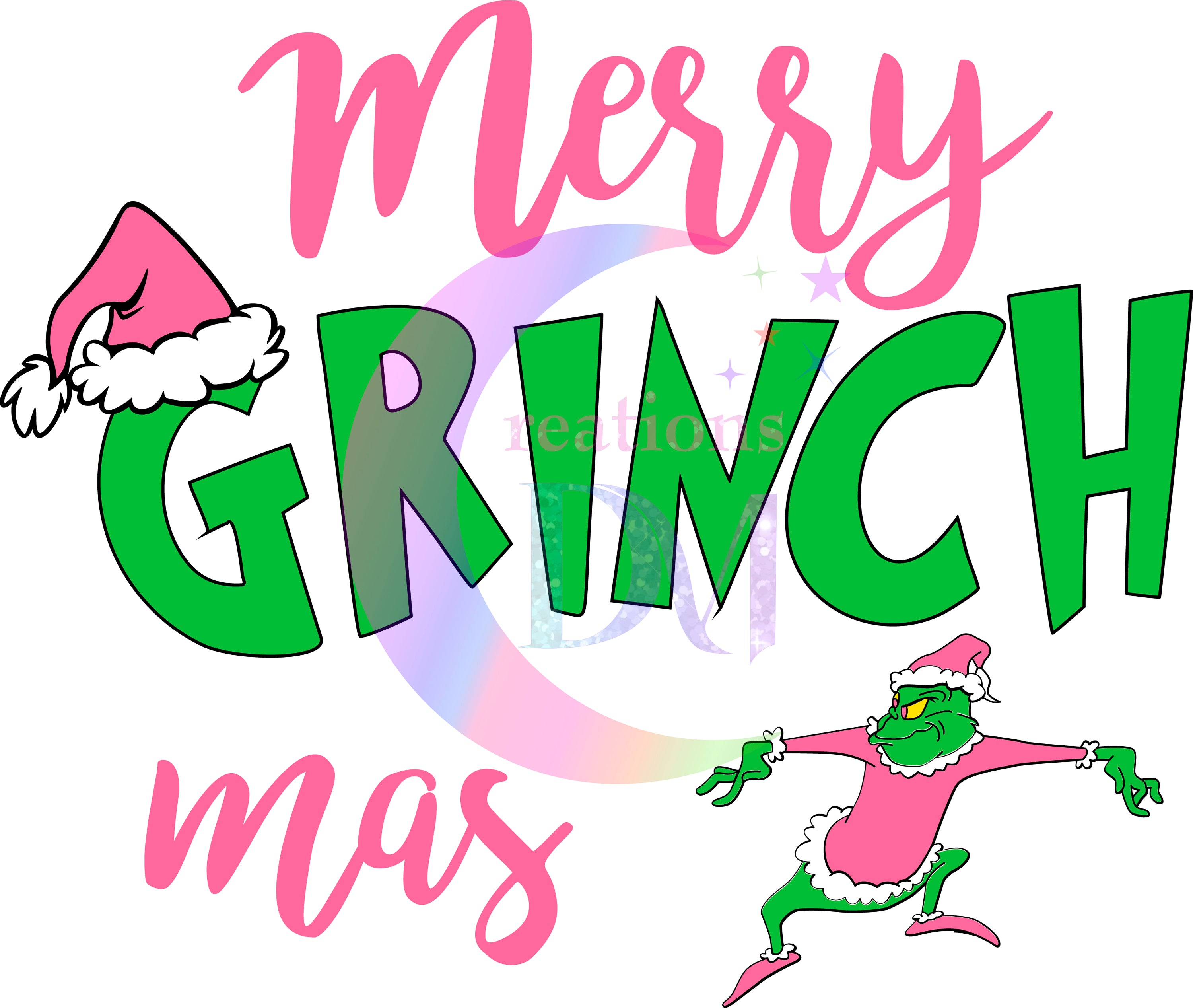 Christmas DTF - merry grinchmas pink , pink Santa hat