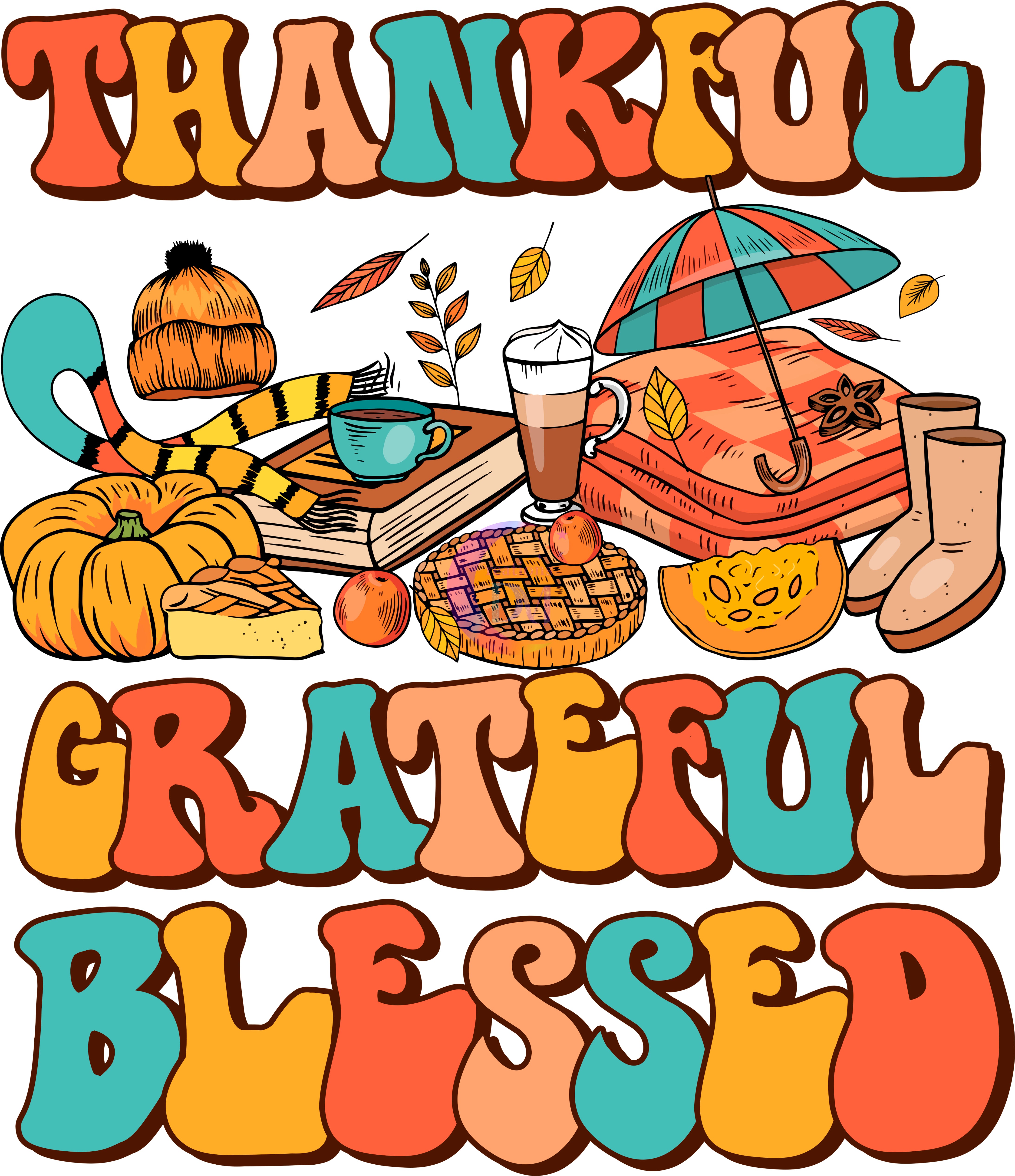 Thanksgiving DTF-thankful grateful and blessed fall