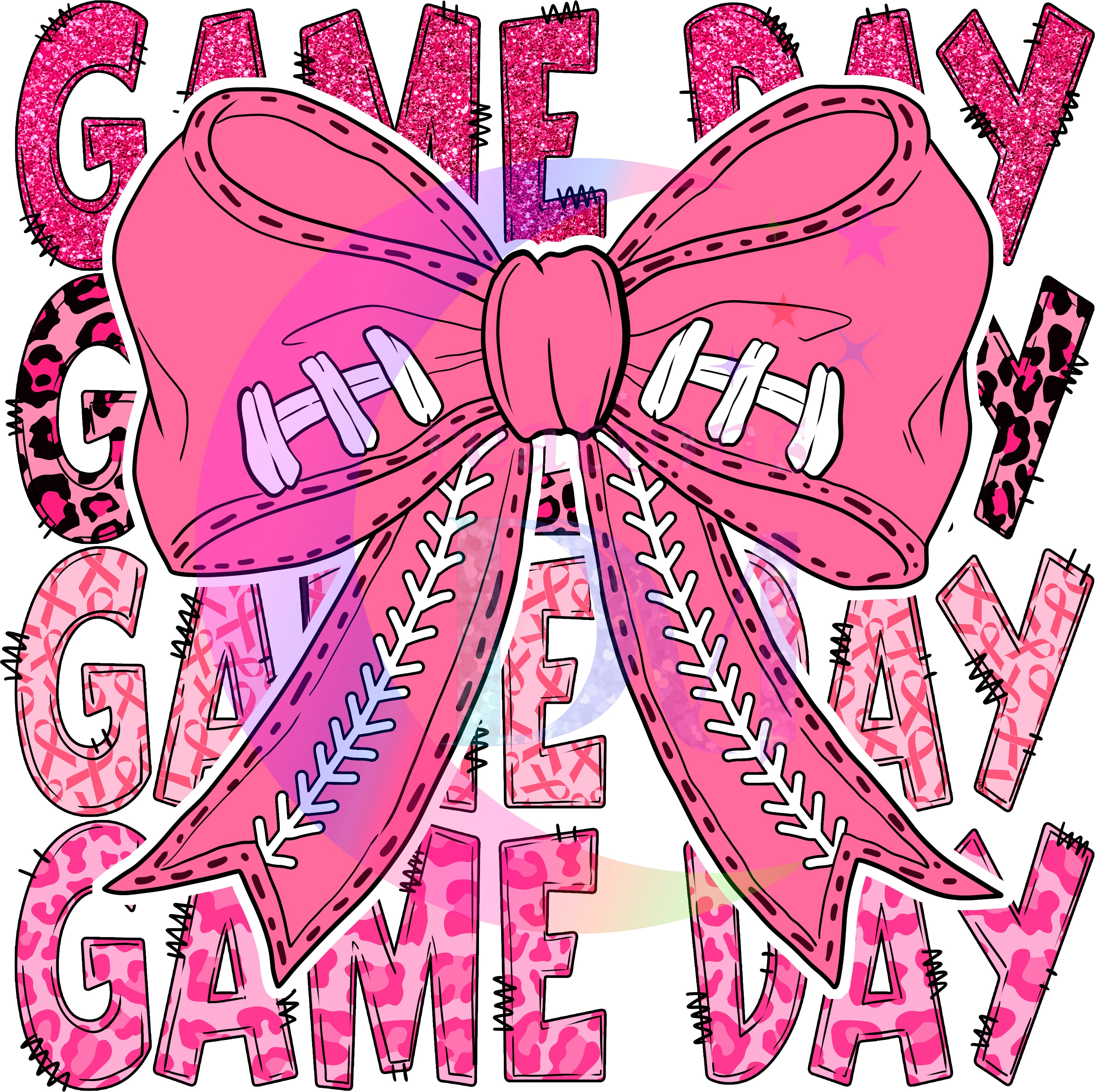 breast cancer awareness month -game day , pink bow with football lining