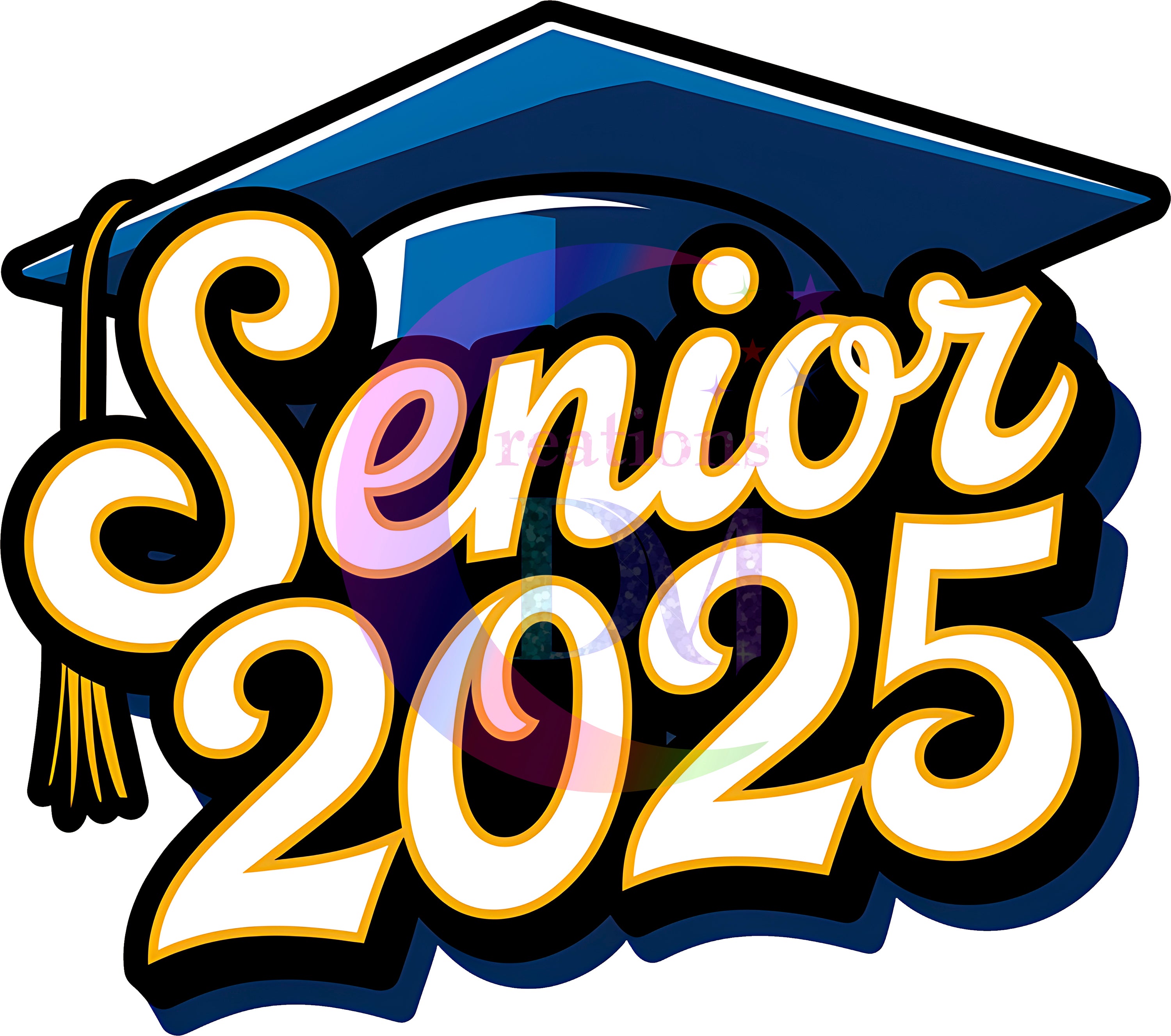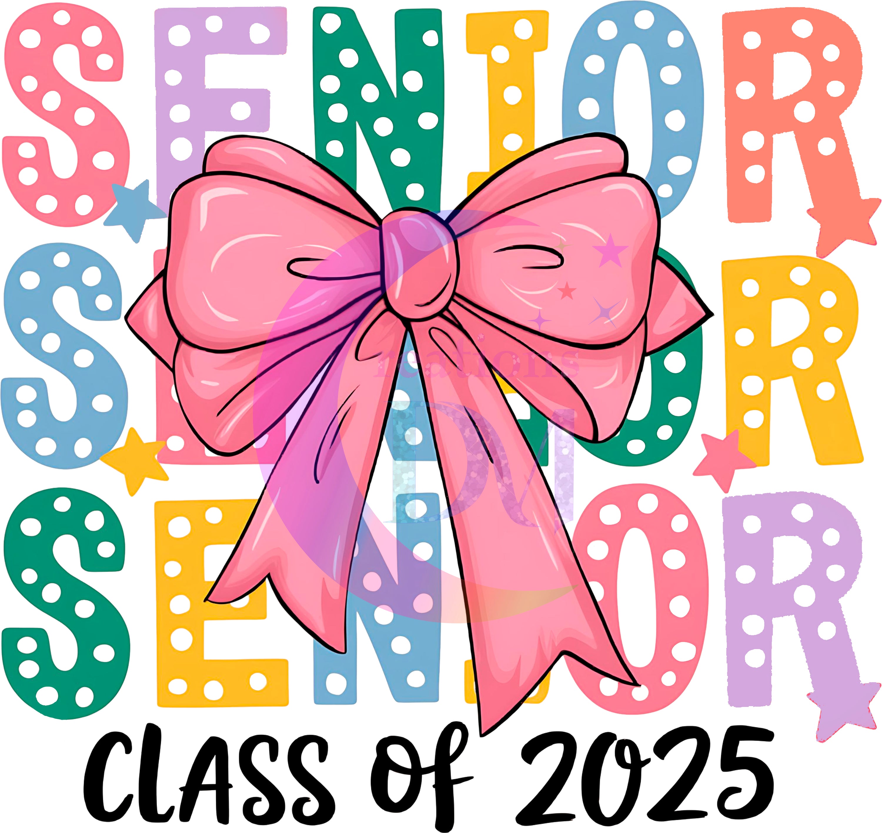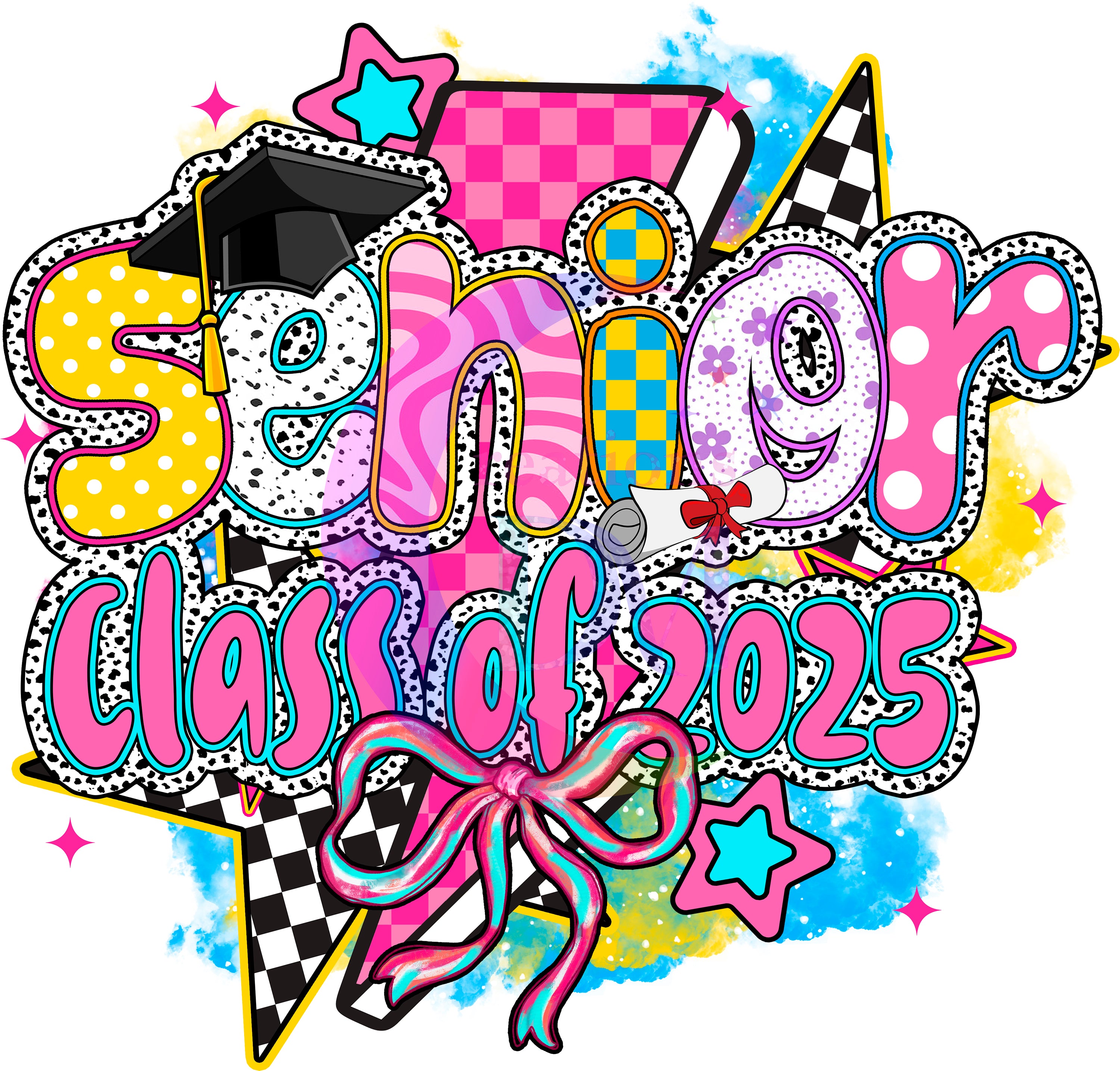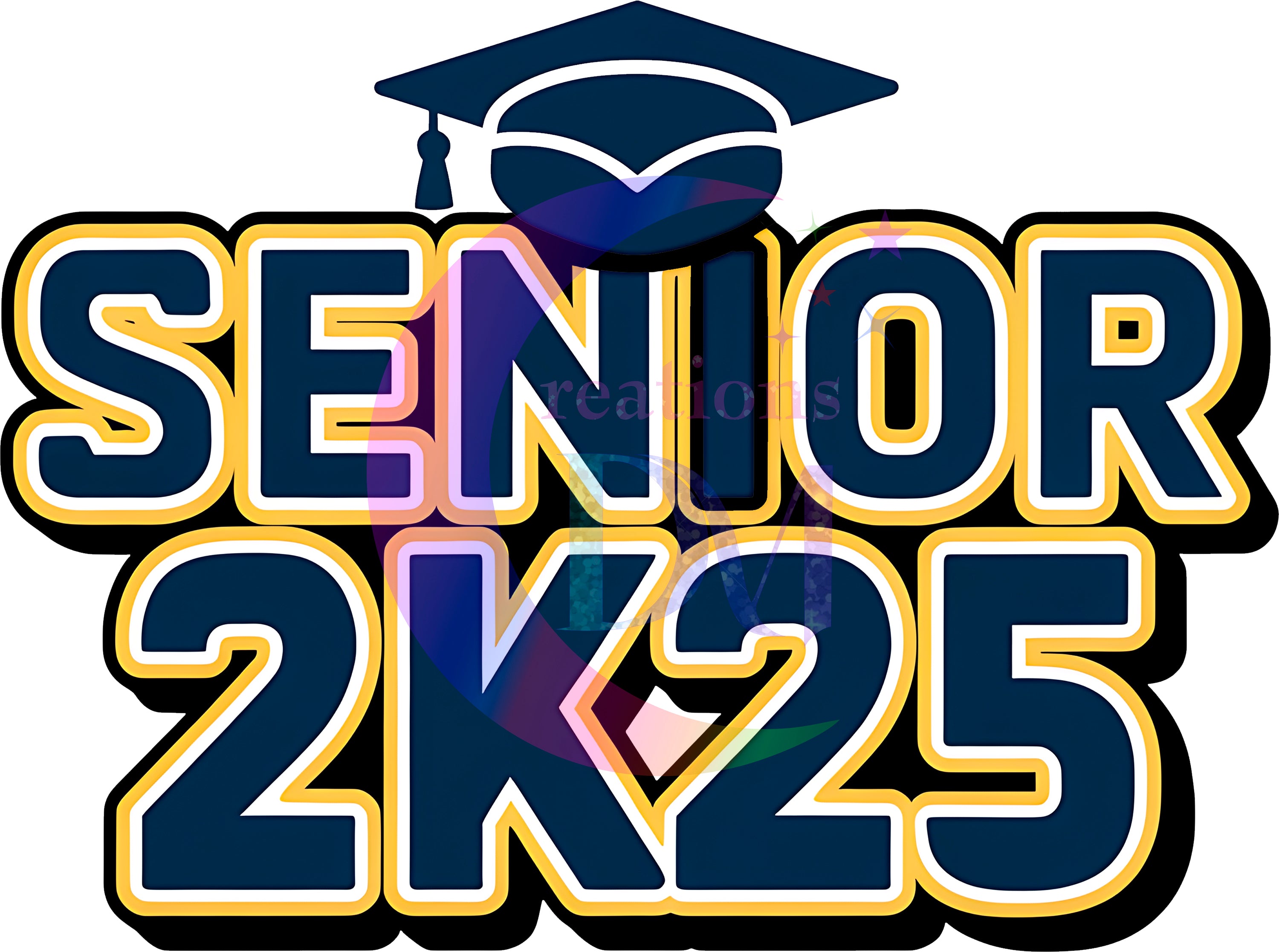 graduation DTF - senior 2025 black number, colorful letters