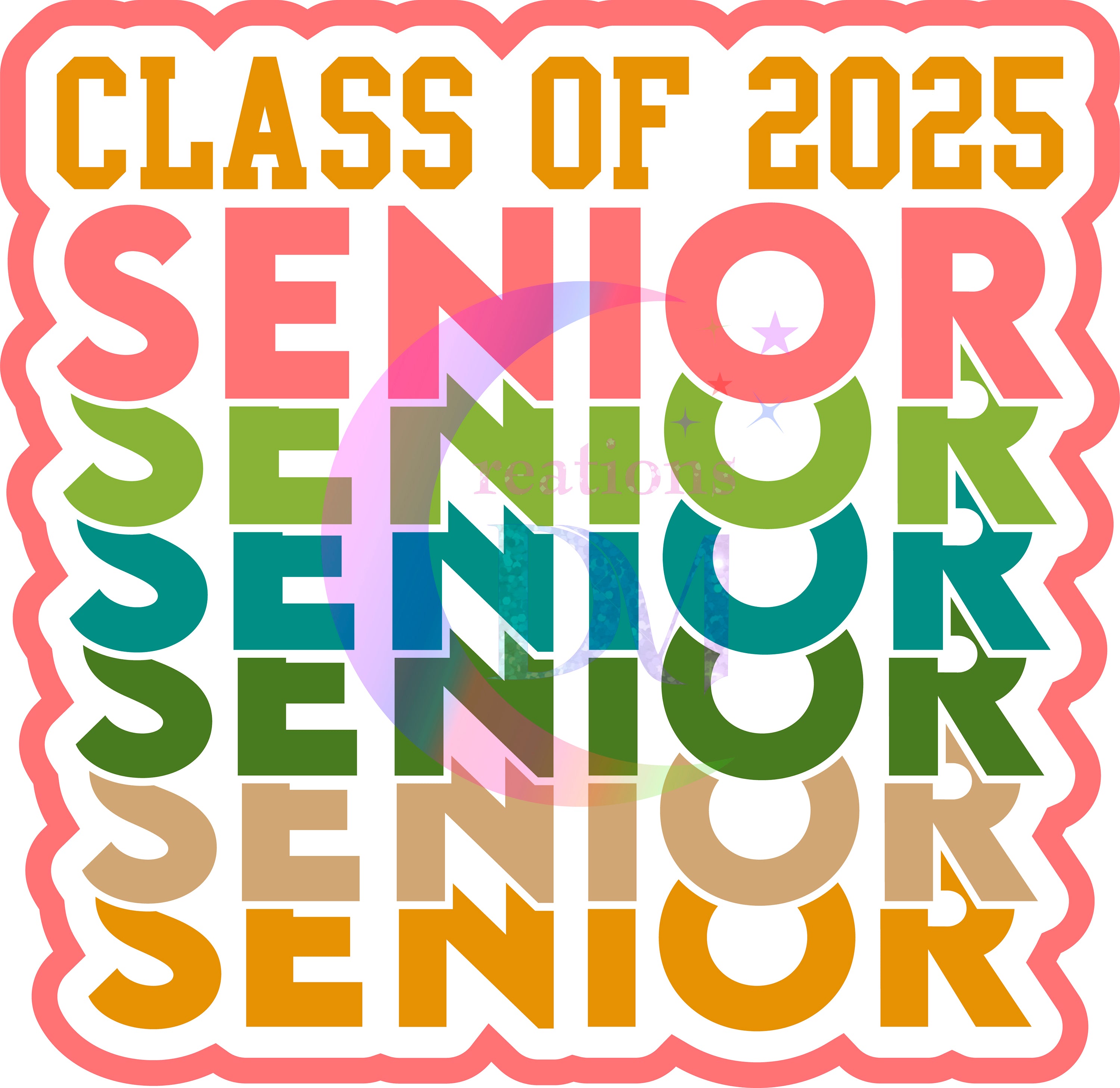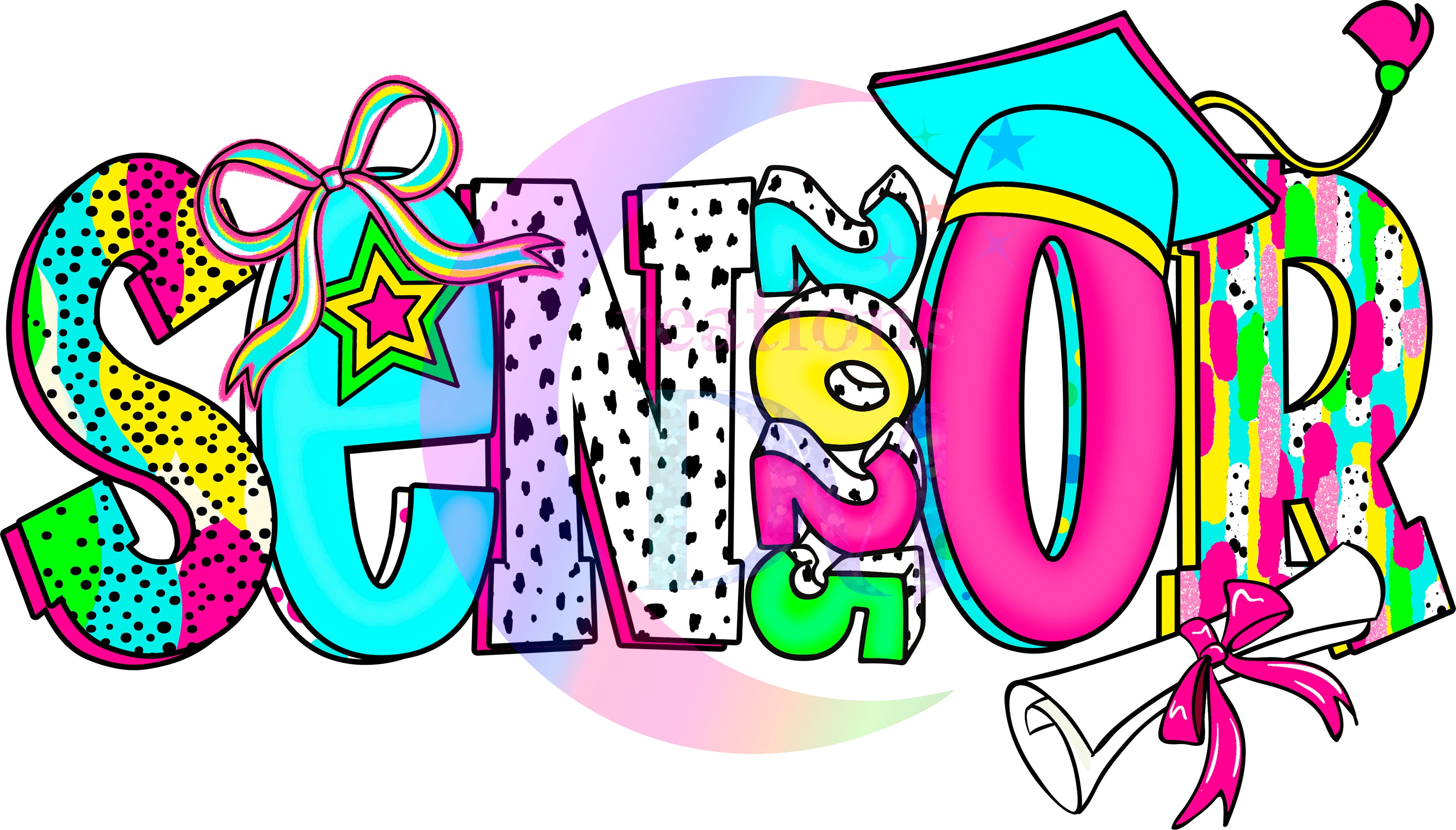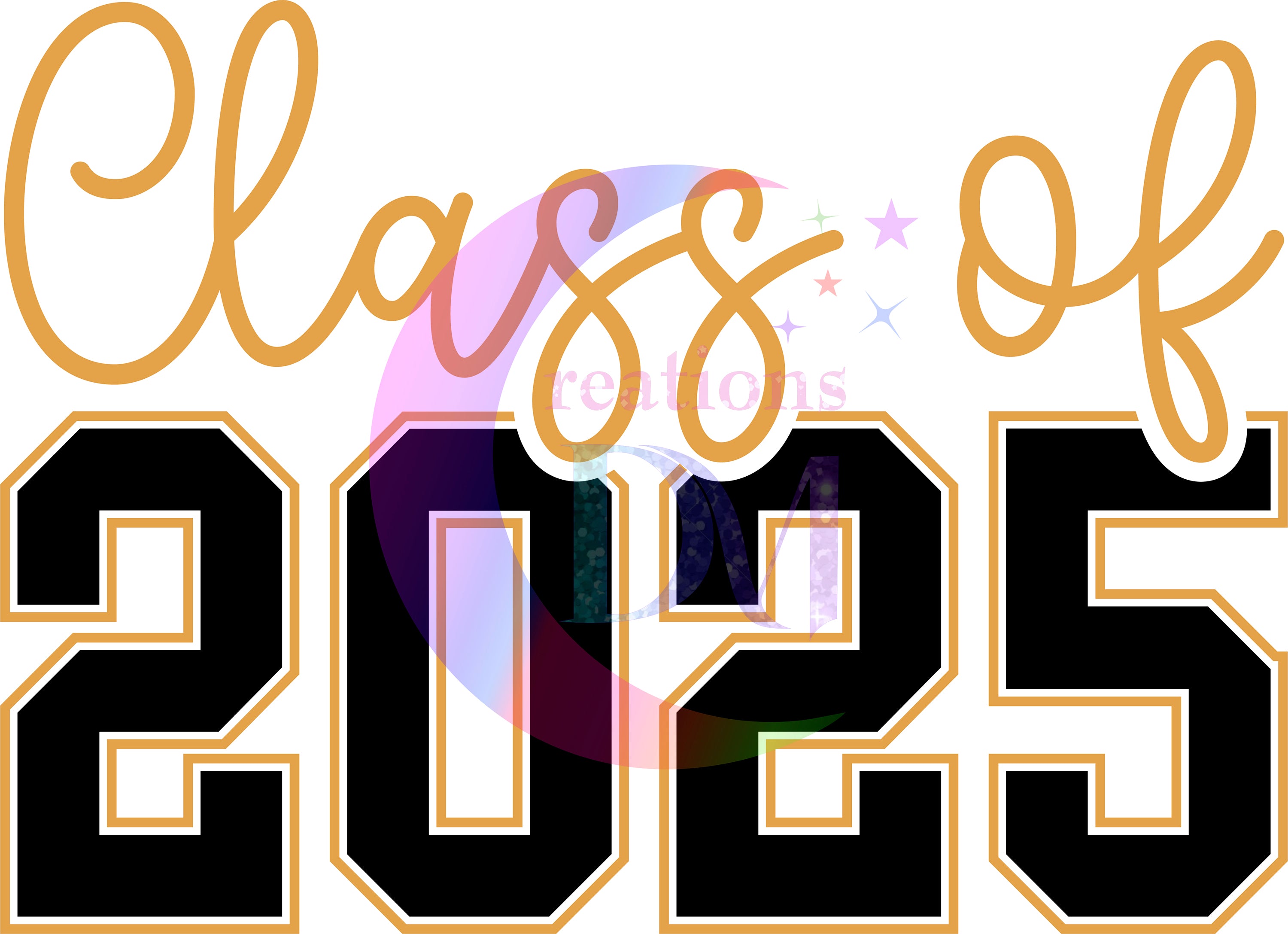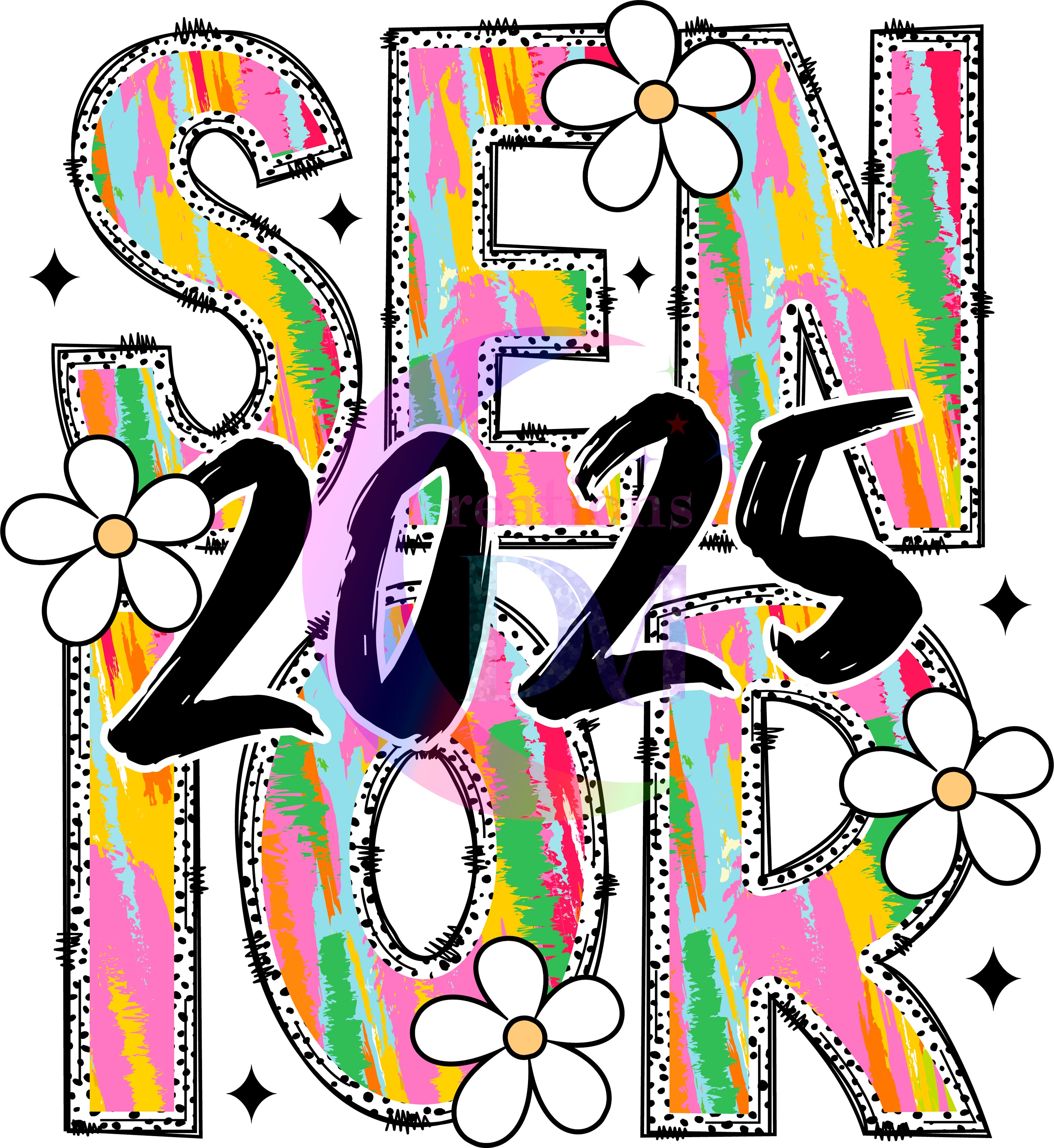 graduation DTF - senior 2025 black number, colorful letters