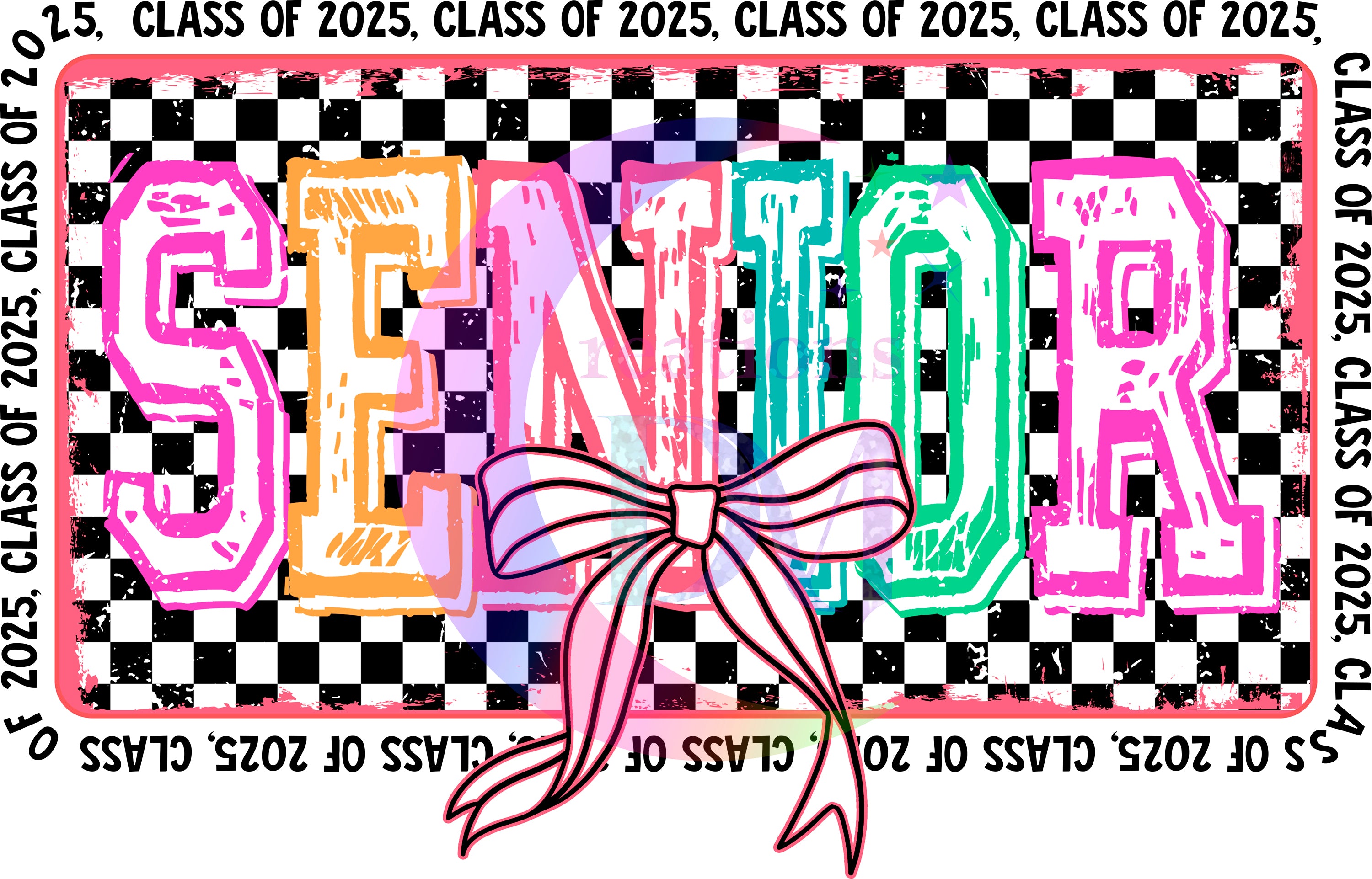 graduation DTF - senior colorful, checkered background
