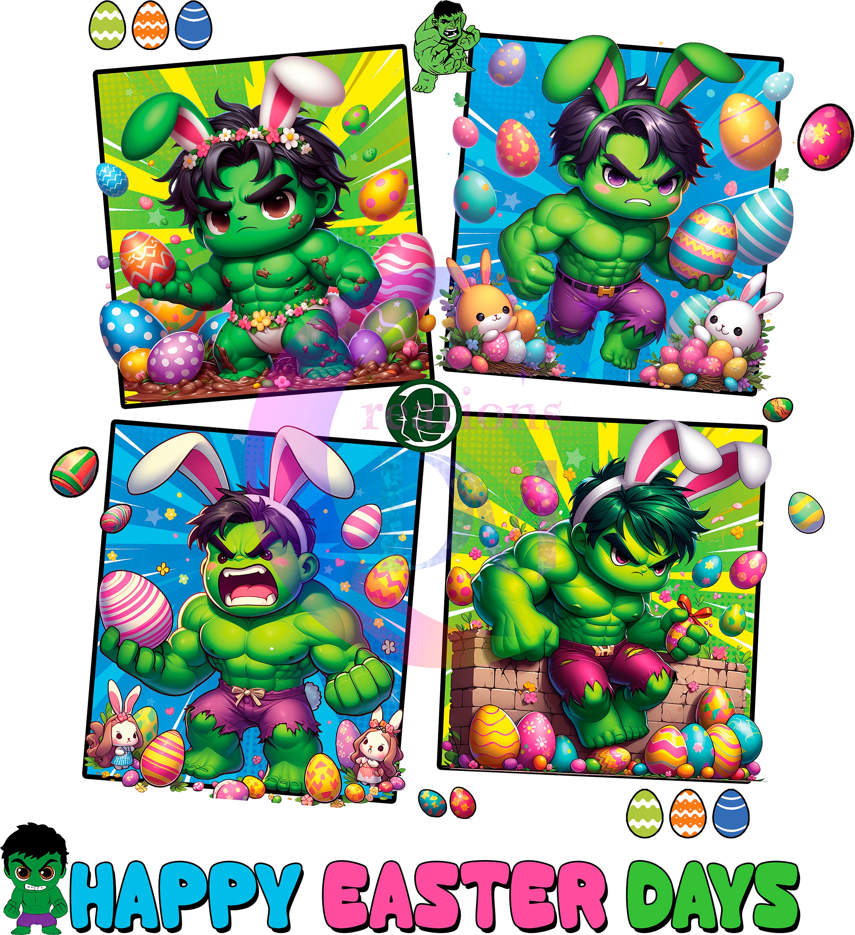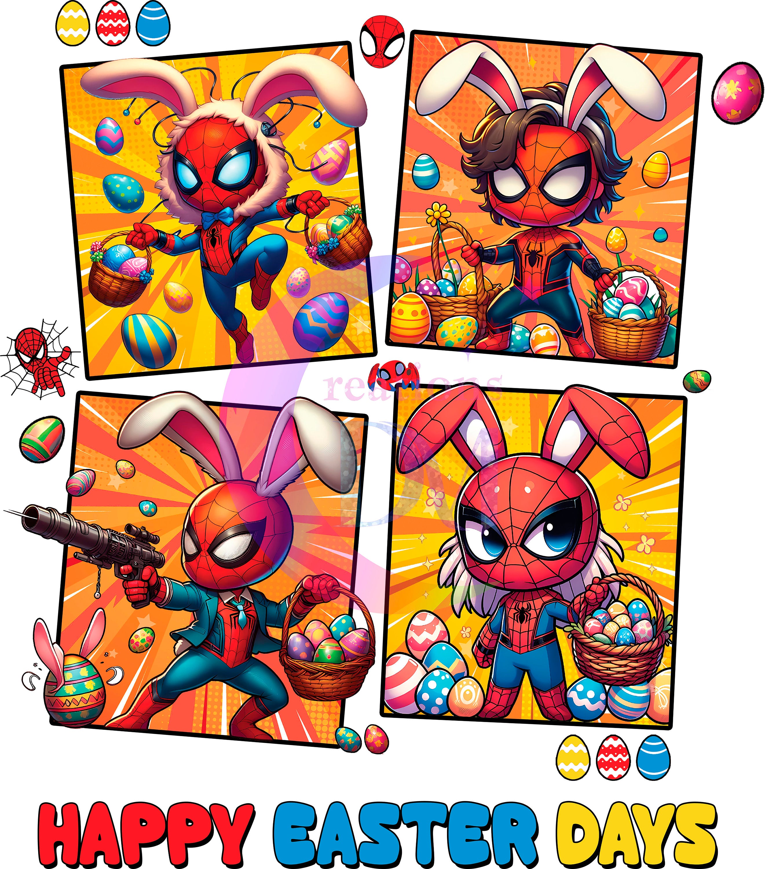 Easter super heroes : happy easter days 4 squares DTF 2