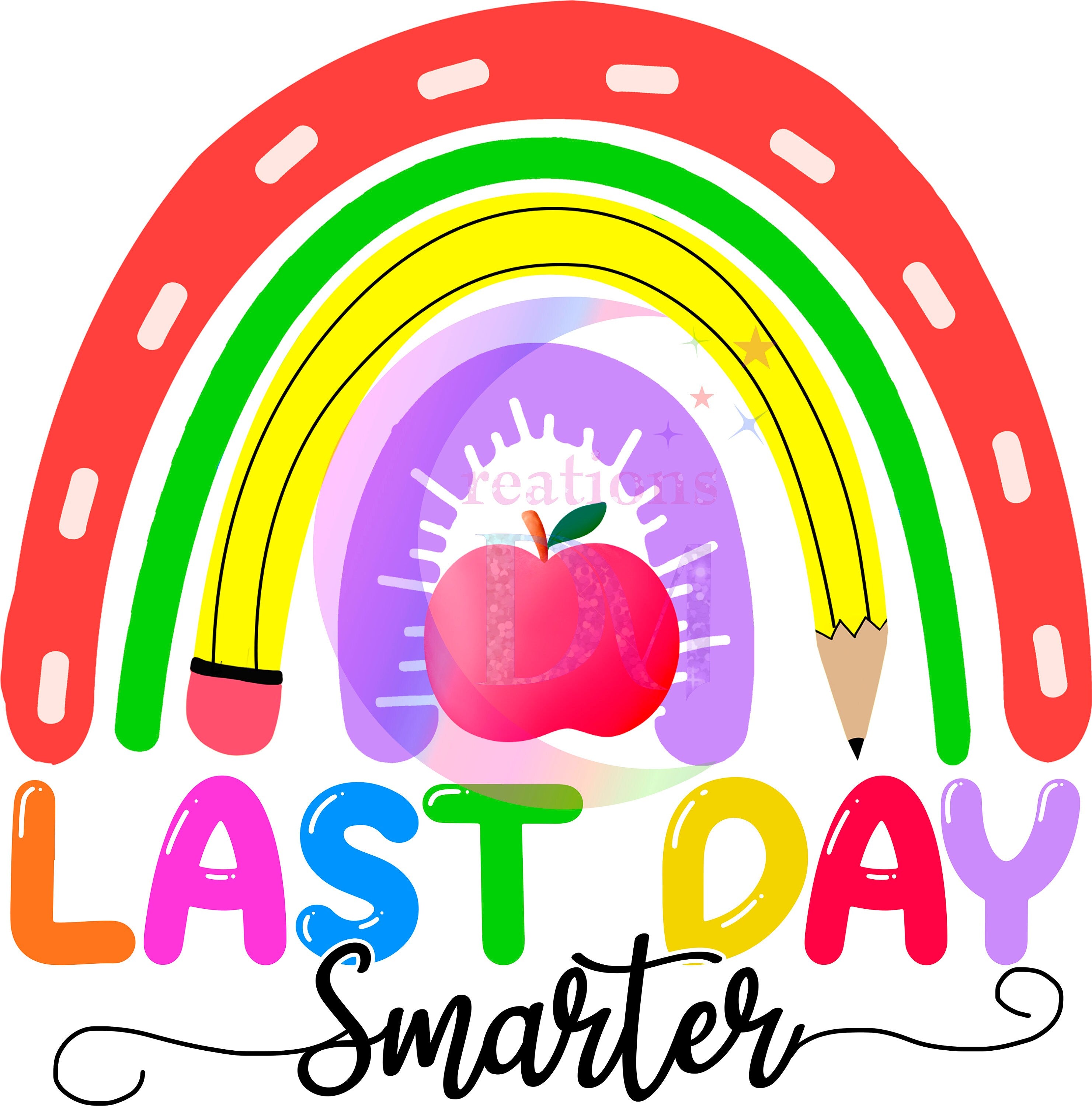 last day of school DTF - last day smarter pencil rainbow with apple in the middle