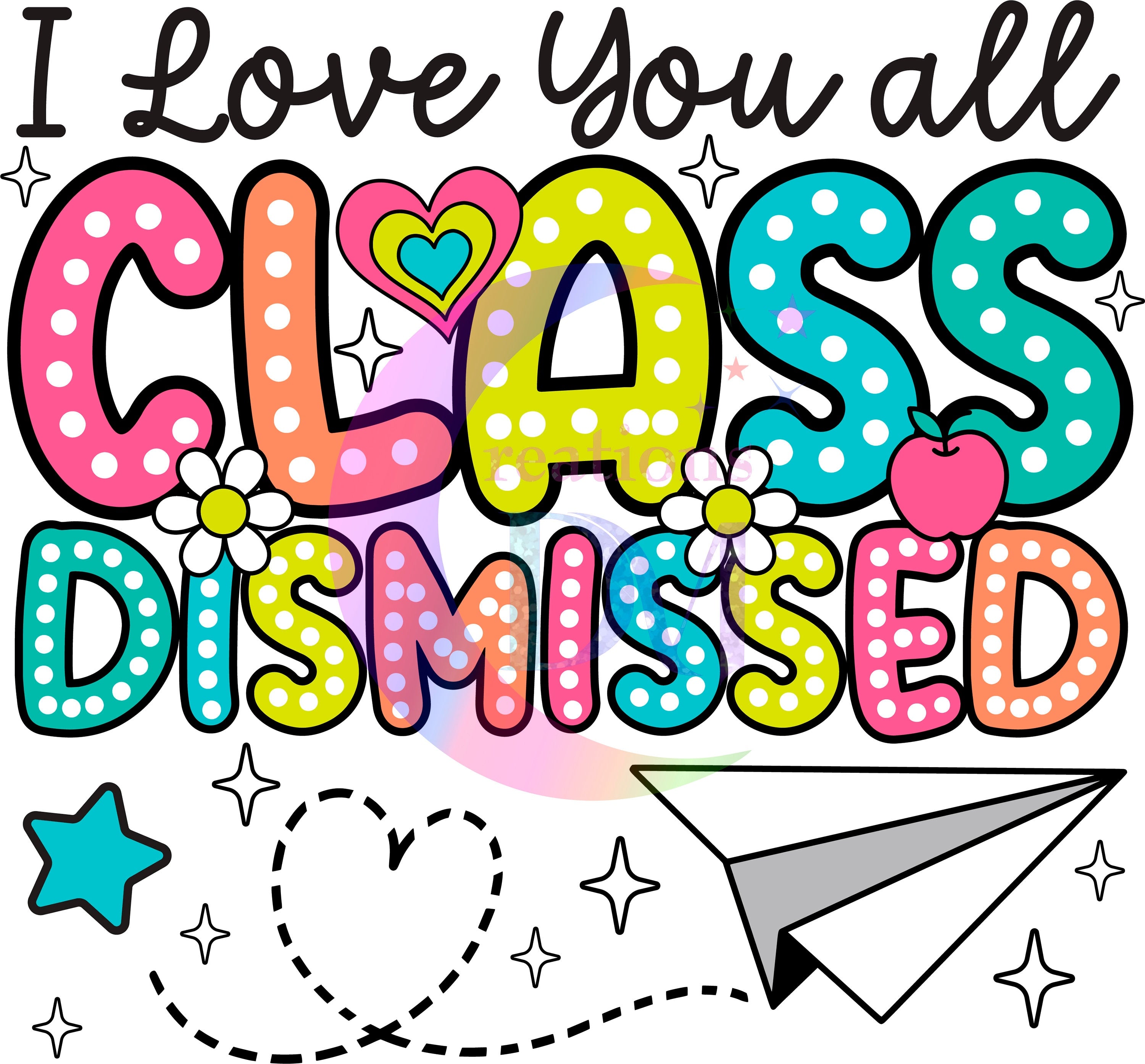 last day of school DTF - class dismissed red apple with stars