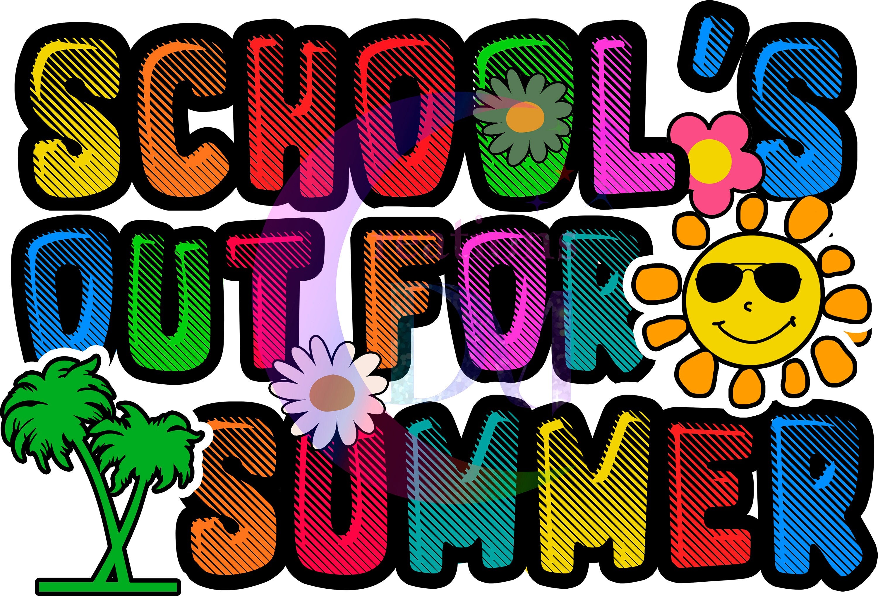 last day of school DTF - school out for summer sun with glasses , neon letters