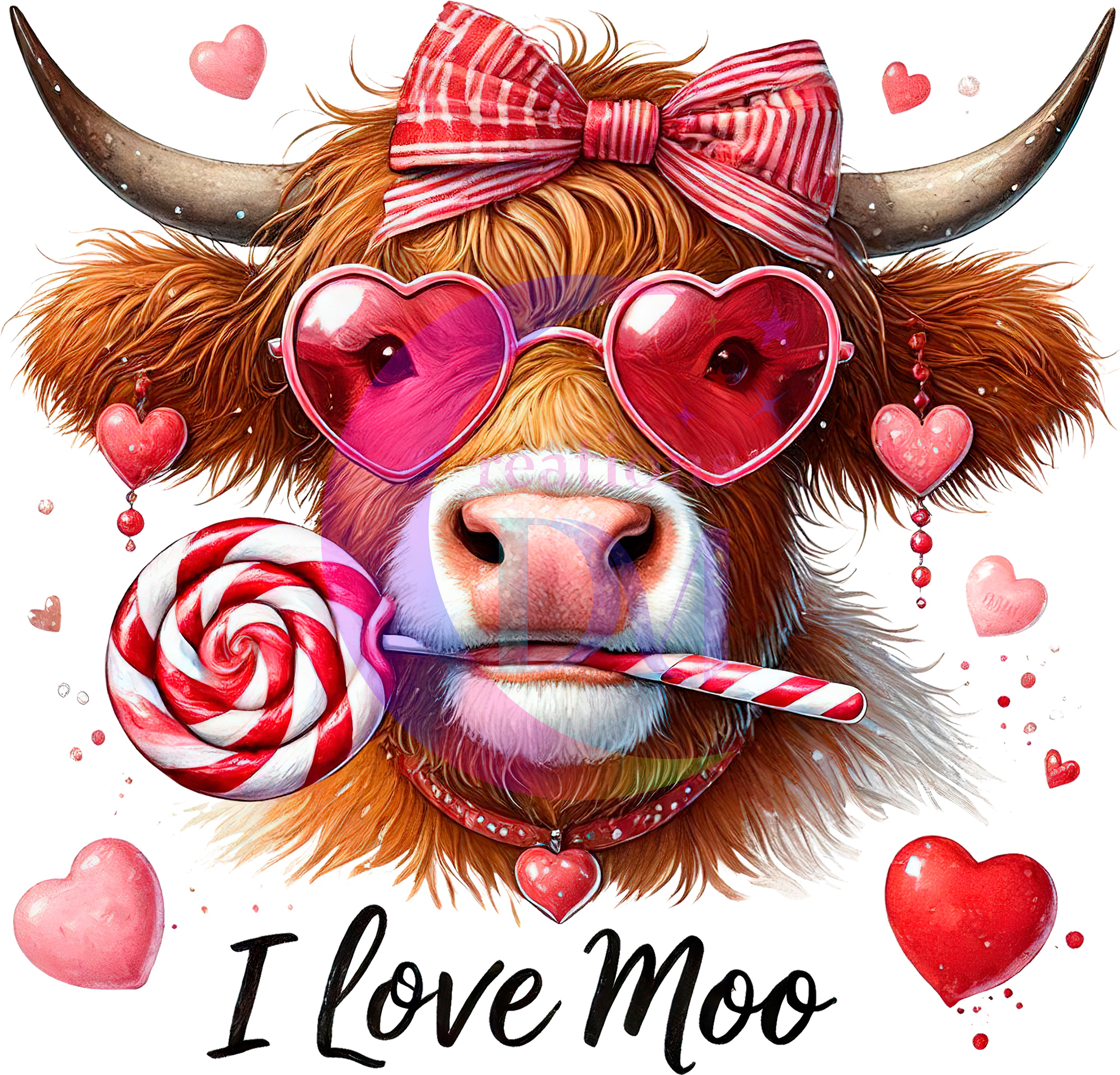 Valentines DTF -I love Moo with glasses
